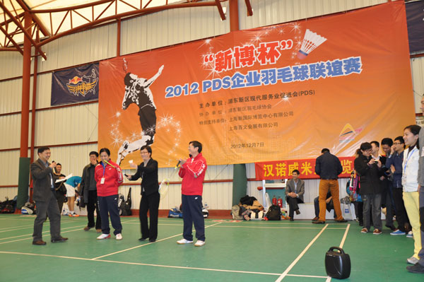 12月7日下午,2012“新博杯”PDS企业羽毛球联谊赛在浦东游泳馆揭开序幕。本次比赛由浦东新区现代服务业促进会主办,新区羽毛球协会协办,上海新国际博览中心有限公司、上海百文会展有限公司特别支持。